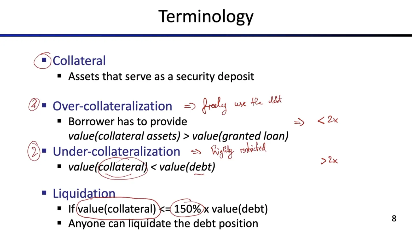 - 规则:抵押物价值 > 借出资产价值。