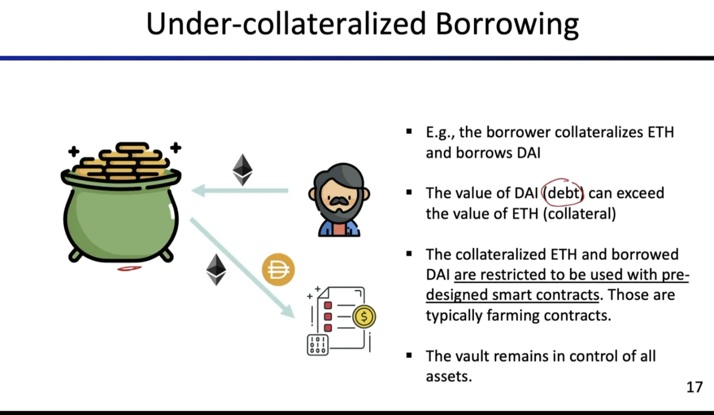 - 规则:借出资产价值可以高于抵押物价值。